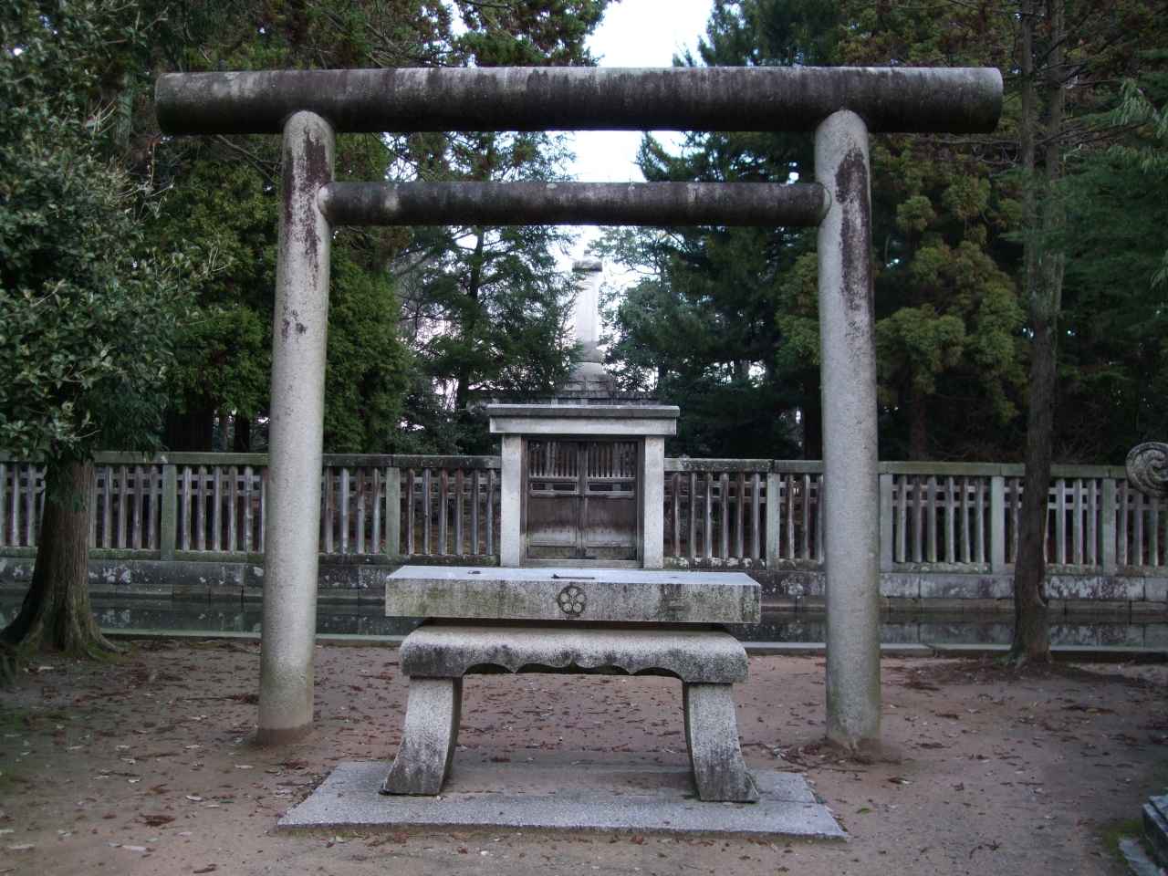 前田年長公墓所は八丁道を瑞龍寺の反対方向に行った先にあります。日本一の墓という案内板がありましたが、墓石の高さ11.9メートル、敷地1万坪(かつて)とくれば日本一ということもうなずけます。墓所に入るとこれも巨大な石灯籠が何基かあって、びっくりさせられます。参道のような先に小川を渡ると写真のような石塔が見えますが、遠くから眺める格好になるので、実際の高さほどの威圧感はありません。石塔の下に狩野探幽下絵とされる蓮華図があるのですが、これも遠くて見えにくい。オペラグラスをお勧めします。