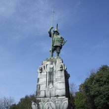 熊本といえば熊本城と水前寺公園。しかし、次はなかなか出てこないと思います。でも、次はここ。電停「本妙寺前」から、歩いて20分弱。途中、妙に立派なコンクリートの山門を抜けてどんどん進みます。中央にぎっしりと石灯篭が立ち並んだ奇妙な石段を登ると意外に豪華な廟。さらにというか、ここからがまた大変なのですが、長い石段を登りきった山の上にこの像があります。高さ12m。槍を持った清正像は北村西望作。大迫力の立ち姿です。