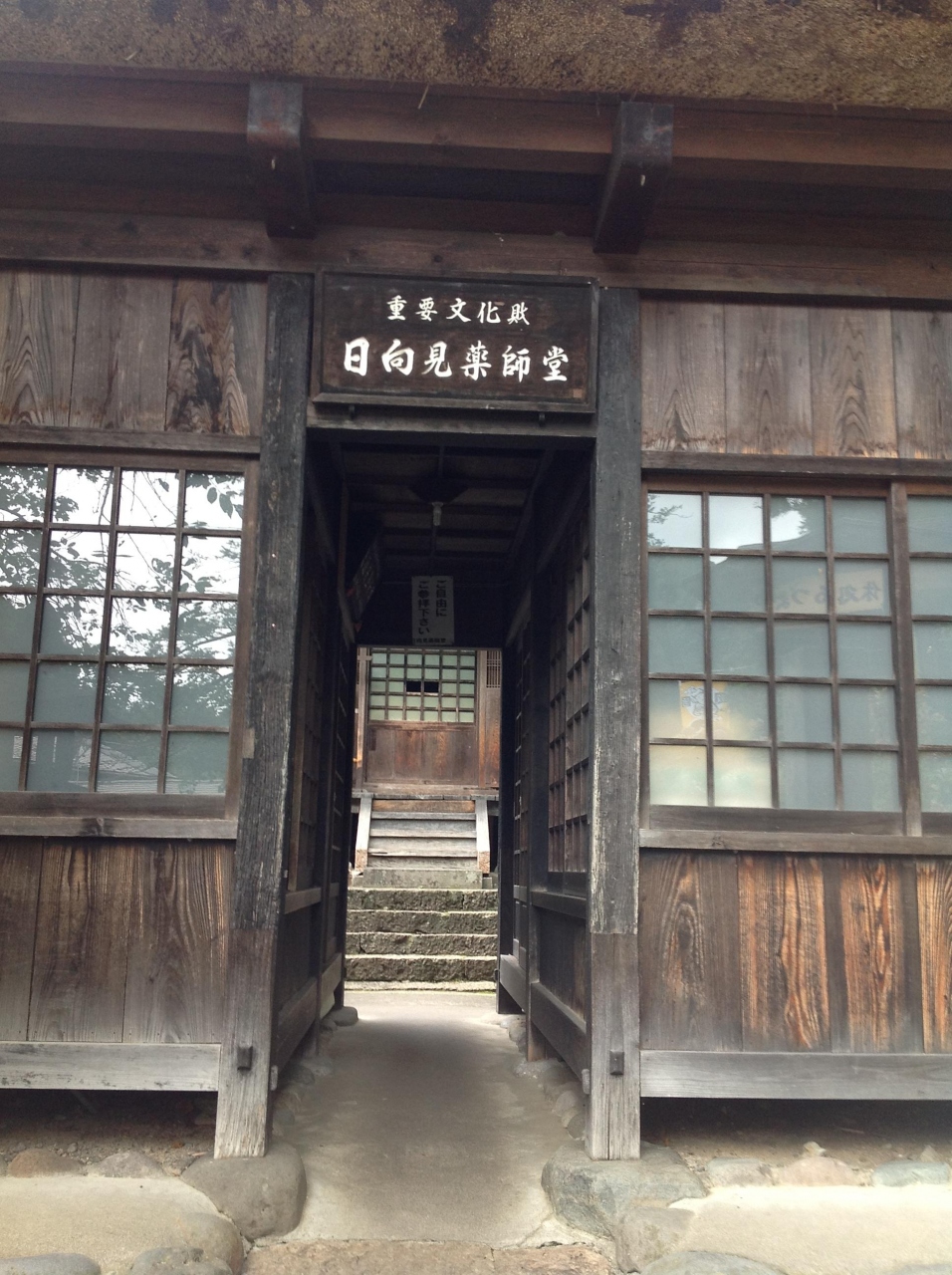 少し分かりにくいのか迷ってる人たちがいましたが、3本あるうちの真ん中の道を真っ直ぐ行けばあります!急な坂道を登ると泊まった宿。真ん中が日向見薬師堂。左も旅館だったかな。
