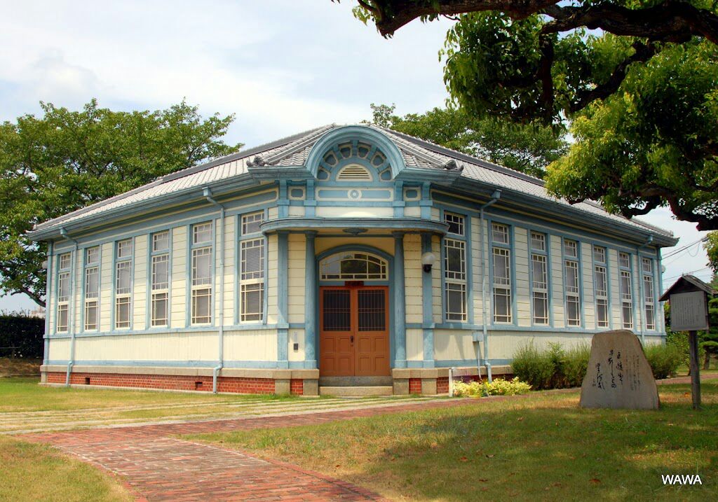 白を基調に水色枠で塗り分けられた外観はもとより、内部の保存状態も良く見応えがある建物です。