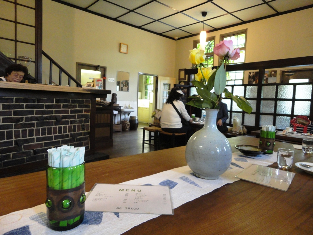 もう何年ぶりか思い出せないほど久方ぶりに倉敷の大原美術館横にあるエル・グレコでコーヒーを飲みました。まだ学生だったころ、すごーく憧れて春の冷たい雨の降る中、入ったものの、慣れてない私にはとっても苦く感じたコーヒーでしたが、さすがに年月を経て「ま、ふつーのコーヒーかな」と。多分、ツタに覆われた外観はあの時と同じ。店内が見えず不安な気持ちにさせるドアも昔のまま、のような気がしました。当時と違ったのはお客さんの多さ。ほぼ一杯でとてもにぎやかでしたが、大原の名画を1人かみしめるという雰囲気ではなかったかも。