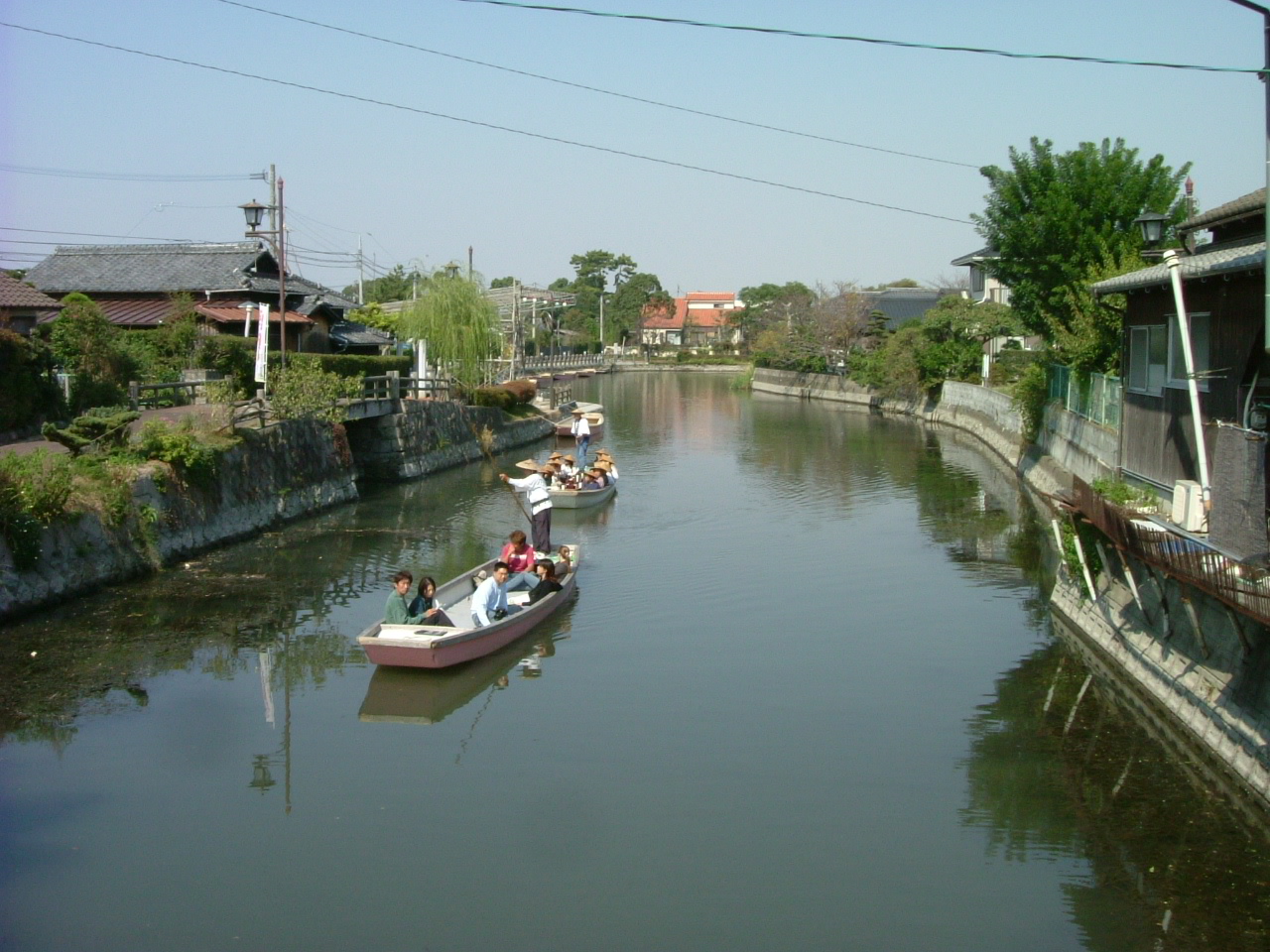 柳川の川下りは、遊覧船で行くお堀巡りです。約400年前の柳川城築城の際に、城下町が整備され、このお堀も新たに掘って造られました。情緒の残る町並みには、至るところに堀が巡っていまして、道より、堀が優先で作られたのではないかと思えるほど。街の散策では、堀と、堀に沿ったり堀を渡ったりして巡る遊歩道を行きますが、至るところで、この遊覧船と出会います。季節は菖蒲の時期がお勧め。料金は1500円。乗り場もいくつかありまして、お花邸など、名所の乗り場もあって、便利です。帰りに、うなぎセイロをいただけば、柳川観光は完結です。