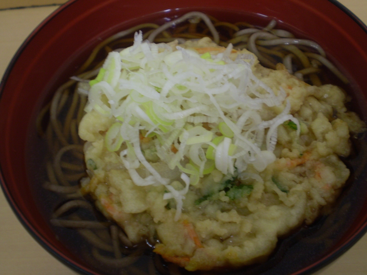 青森駅前の店が20時前で開いていたので、390円てんぷらそばを注文しました。