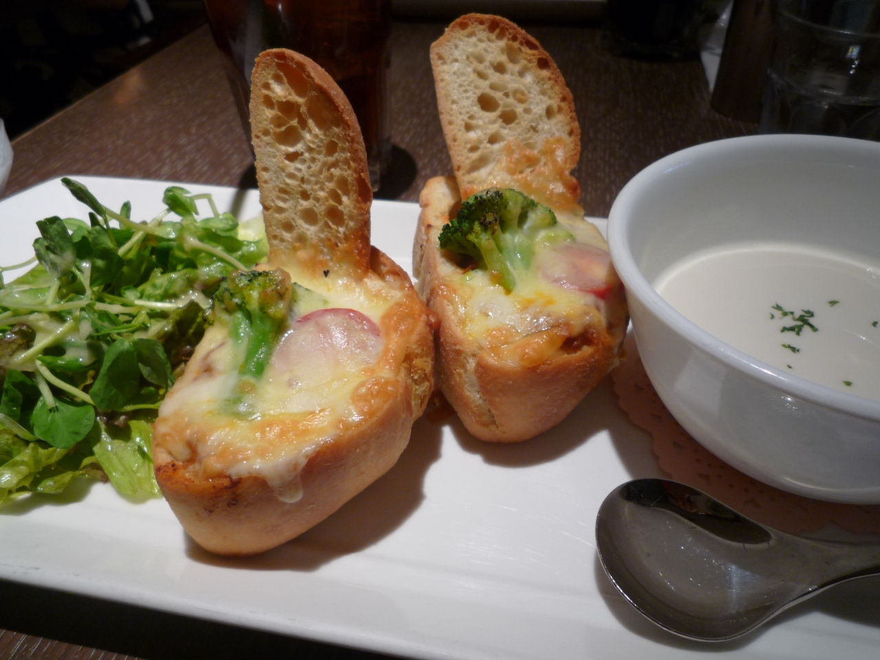 メゾン・カイザー・カフェでは、フランスパンをベースにしたランチセットを食べる事ができます。このサンドイッチセットは、パンとスープと野菜が付いています。これで1000円とリーズナブルな設定です。ぜひ、一度。