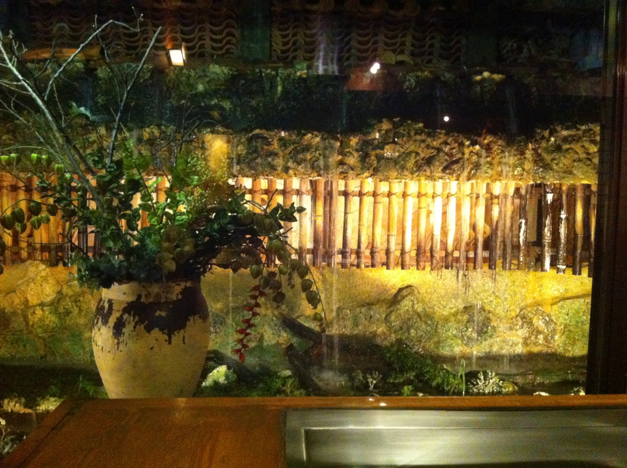 沖縄旅行最終日前夜に鉄板焼が食べたくて行きました。万座毛で夕陽を見た後に電話で予約して30分強でお店へ着いたのですが、9月の平日だったこともあり滝が見える素敵な席を用意してくださいました。石垣牛ロースとあぐー豚2種盛りを注文しました。メインに前菜、スープ、サラダ、ご飯かパン、デザートがついていました。お料理のお味も申し分なく、店員さんのサービスもとても良かったです。また沖縄へ行ったら行きたいお店です。