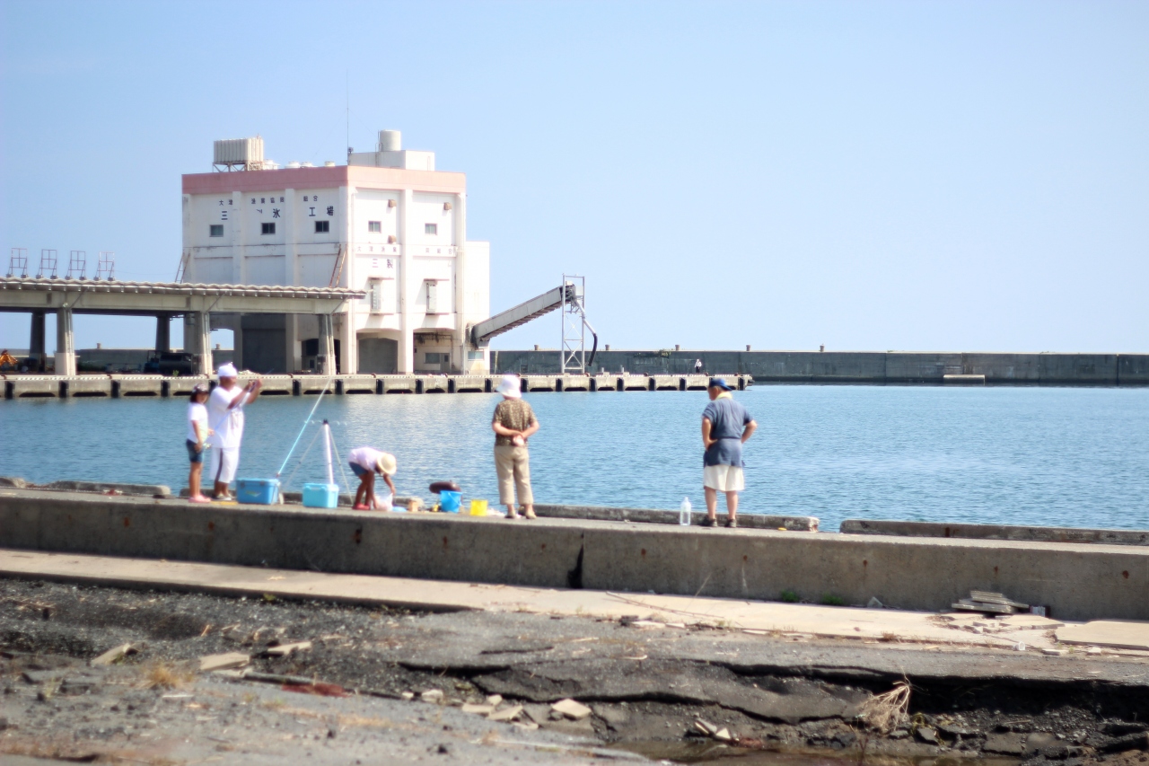 しかし、漁が少ないためか、釣り客にとっては楽園のようで、多くの釣り客が岸壁周辺から釣り糸を垂らしていました。新聞では放射線濃度で大騒ぎになっていますが、この辺は個人の感覚の違いですね。
