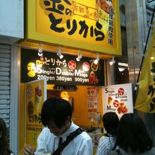 先日テレビで取り上げられていたので、おやつ代わりに買ってみました。ほとんど待つことなく買えました。やや細長い形(これが早く揚げる秘訣らしいです)で、サクサク感のある衣とジューシーな鶏肉がマッチした、美味しい唐揚げでした。