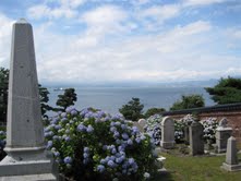 ちょうど紫陽花が盛りの時期だったので、青い海と白い墓碑とのコントラストが思いがけず綺麗でした。レンタカーなどの足がないとちょっと行きにくい場所にありますし、周辺の道路も狭いので車を停める場所に苦労しますが、中々見応えありました。