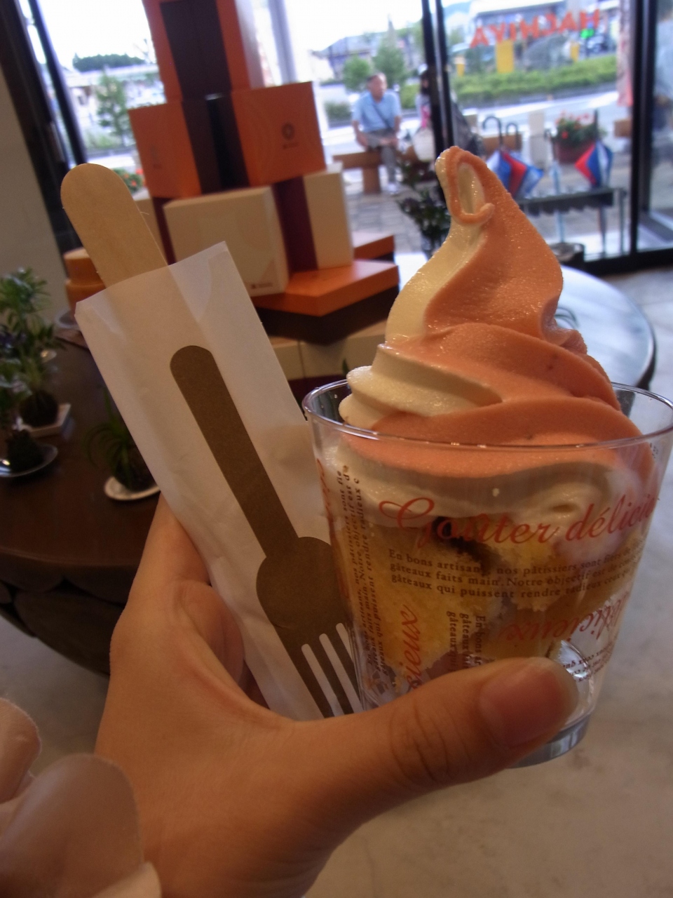 バームクーヘン入りとちおとめソフトクリームをいただきました^^