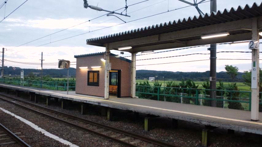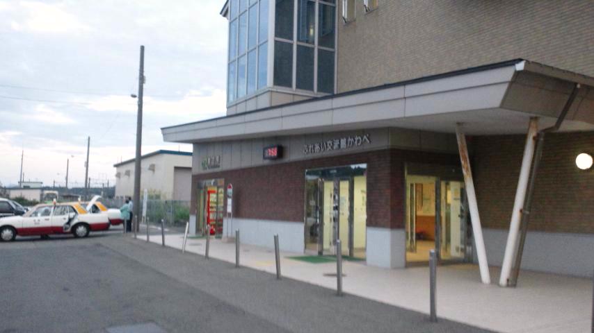 綺麗な駅舎で北口には「ふれあい交流館かわべ」が駅内にありミニ図書館のような雰囲気で人も常駐していました。駅前には数台のタクシーも止まっていて住宅街です。南口は大きなロータリーと田園風景が広がっています。秋田駅にほど近い駅に広大な田園風景が広がっていて驚きでした。