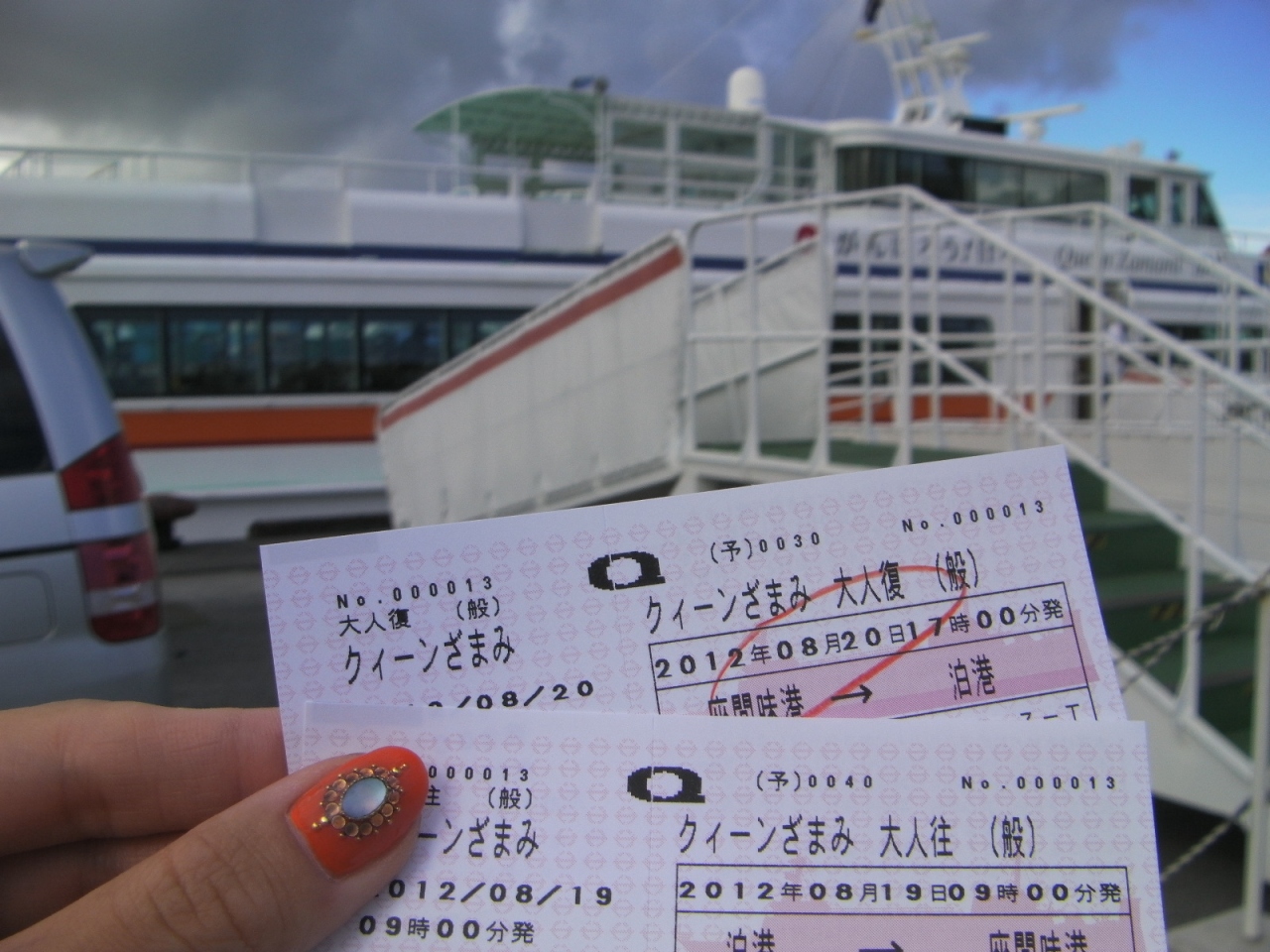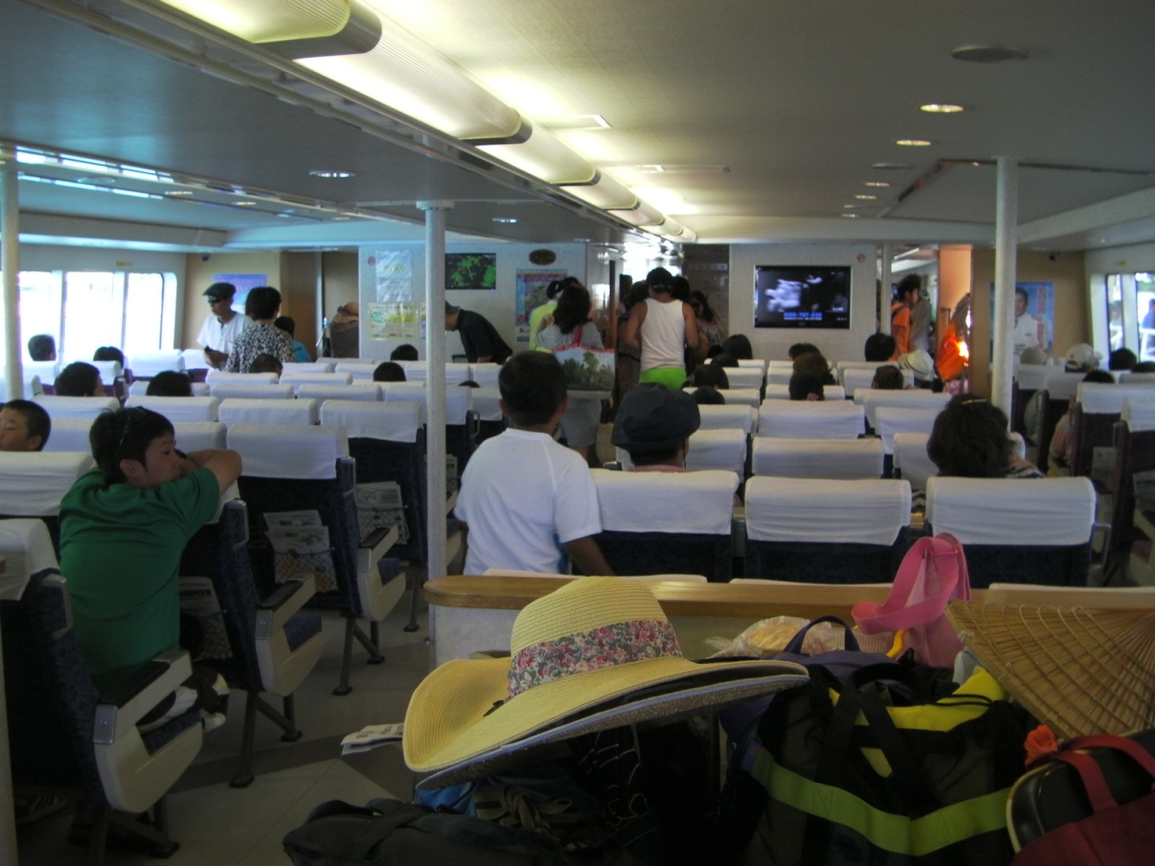 また船酔いに関してですが、そんなに揺れなかったので心配する事はないと思いますが、不安な方は?酔い止めの服用。?音楽を聴く?後方の座席に座る等で解消できるかと思います。1番の解消法は2Fのデッキで景色を見ながら過ごせばあっという間に着くのでオススメかと思います。