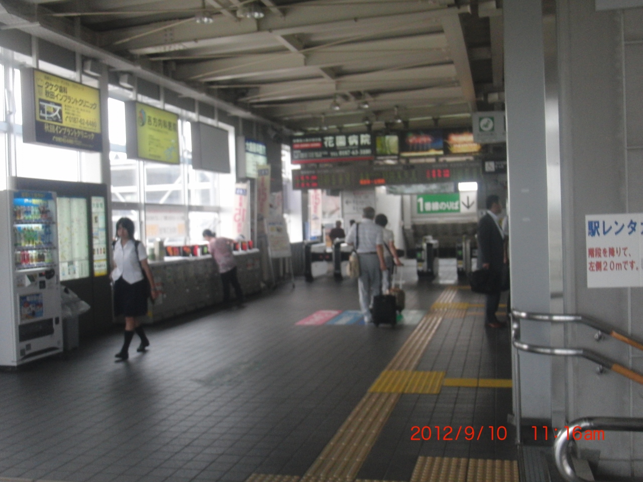 JR秋田から盛岡方面の列車に乗れば、必ず通るのが、この「大曲」の駅ですが、駅舎自体に特徴はありませんが、この駅で列車の進行方向が変わるので、当然、座席の向きも変わってきます。 駅前には、大きなロータリーがありますが、高いビルは、ルートイン大曲くらいです。