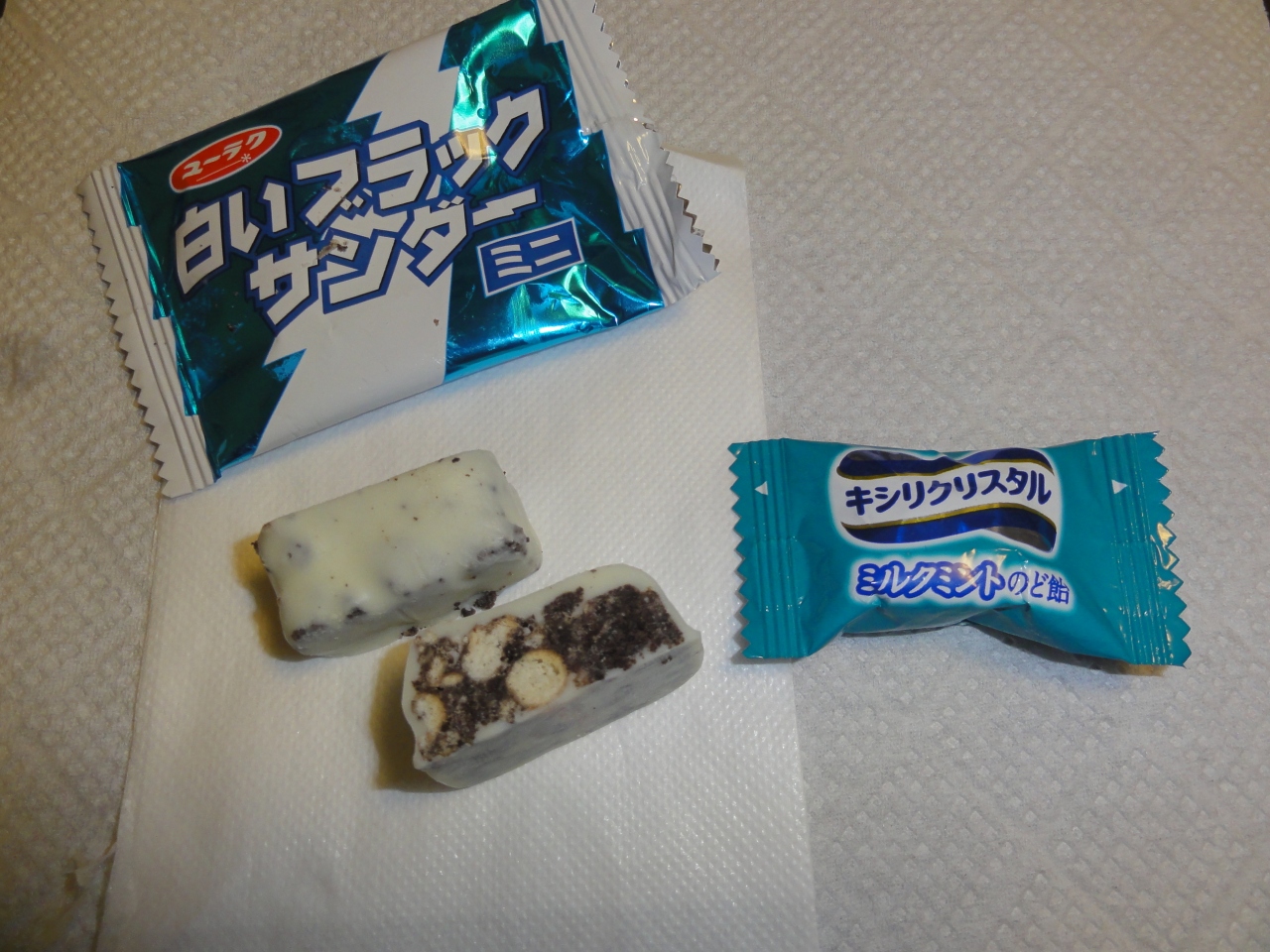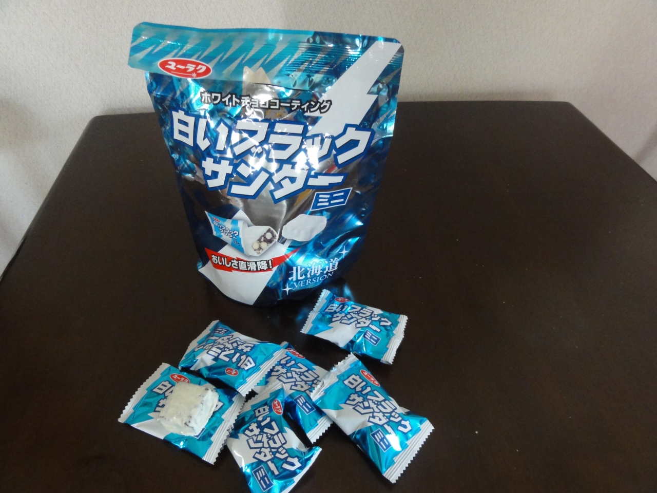 ロンドンオリンピックで有名になった北海道限定のお菓子が「白いブラックサンダー」です。男子体操で金メダルを取った内村選手の大好物だと報道されました。札幌に住む弟が送ってくれました。手に入りにくいものらしく、バータイプではなくミニサイズの袋入りでした。150g入りの袋に12個位入っていました。