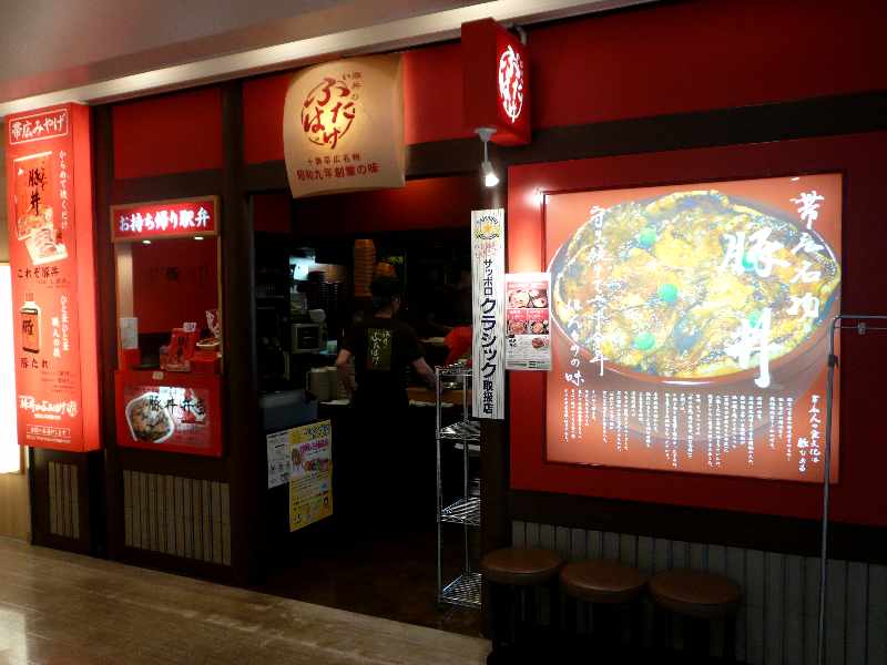 帯広駅ビル内の便利な立地。テイクアウトも可能で駅弁にもなります。