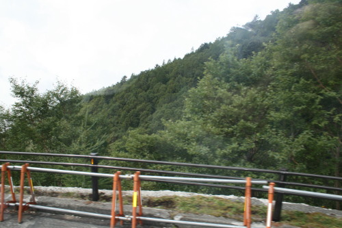 森林の中を抜け、だんだんカーブが強くなり、バスガイドさんいわく、軽い高山病・貧血など途中で気分が悪くなる方もいるとか。