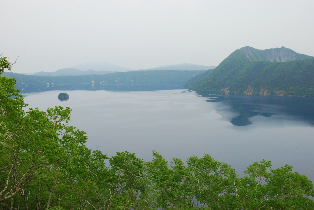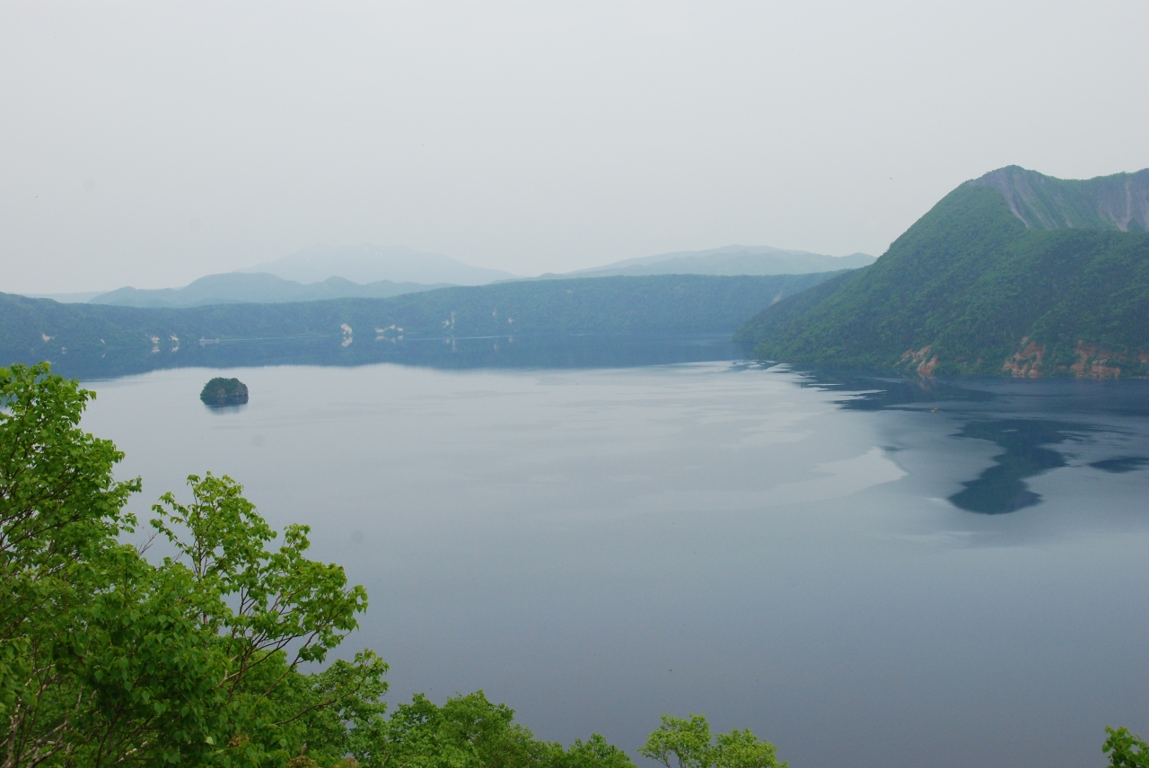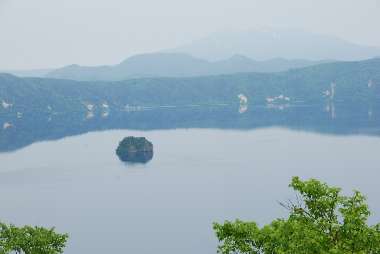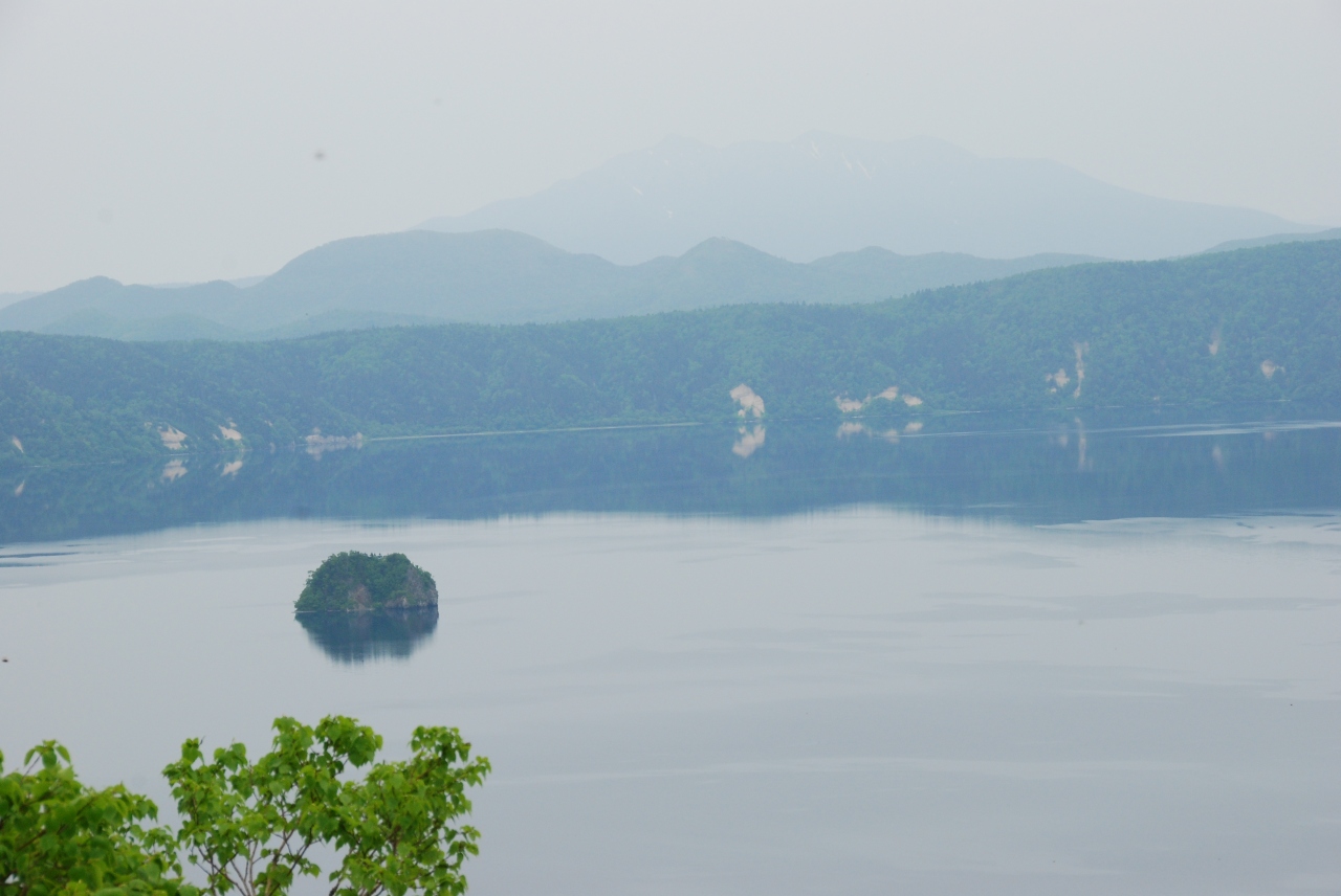霧の摩周湖の霧が晴れ、湖面が綺麗に見え