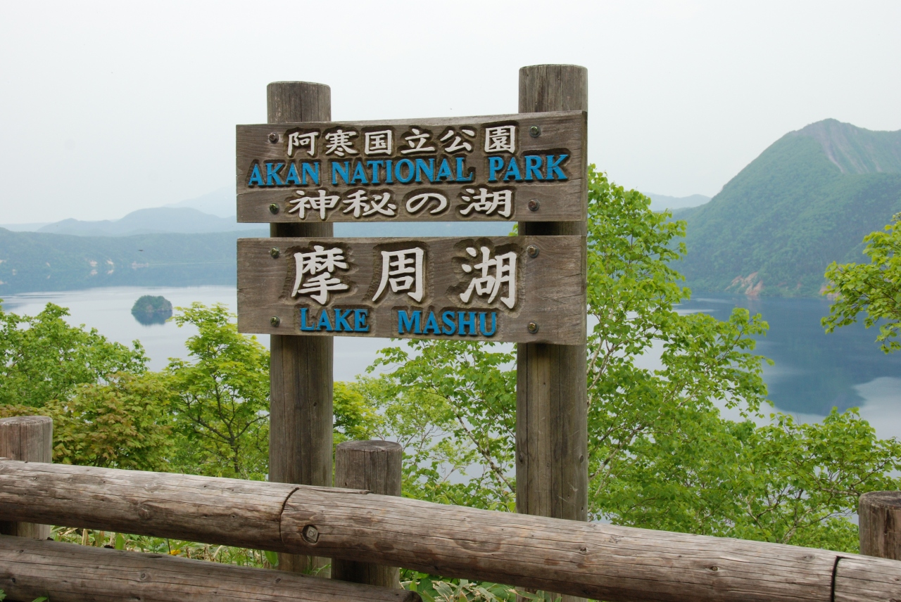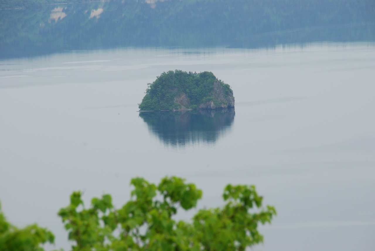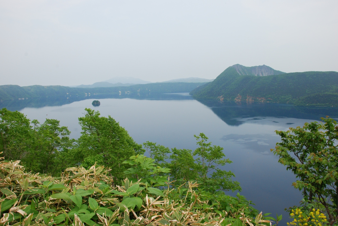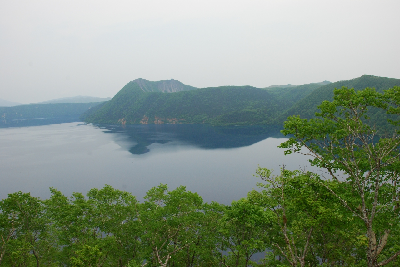 霧の摩周湖の霧が晴れ、湖面が綺麗に見え