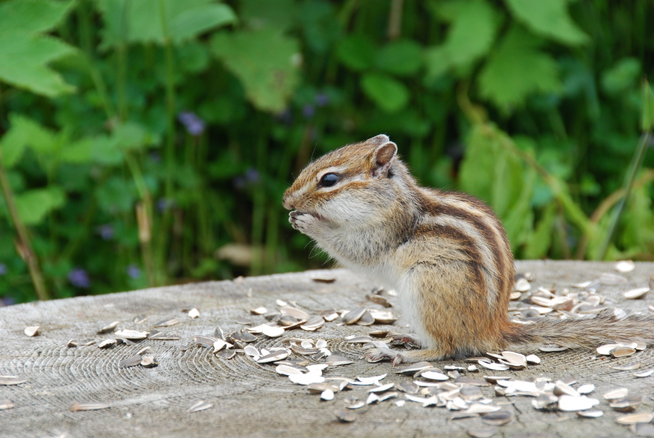 餌付けされた蝦夷リスも餌を食べに姿を現し