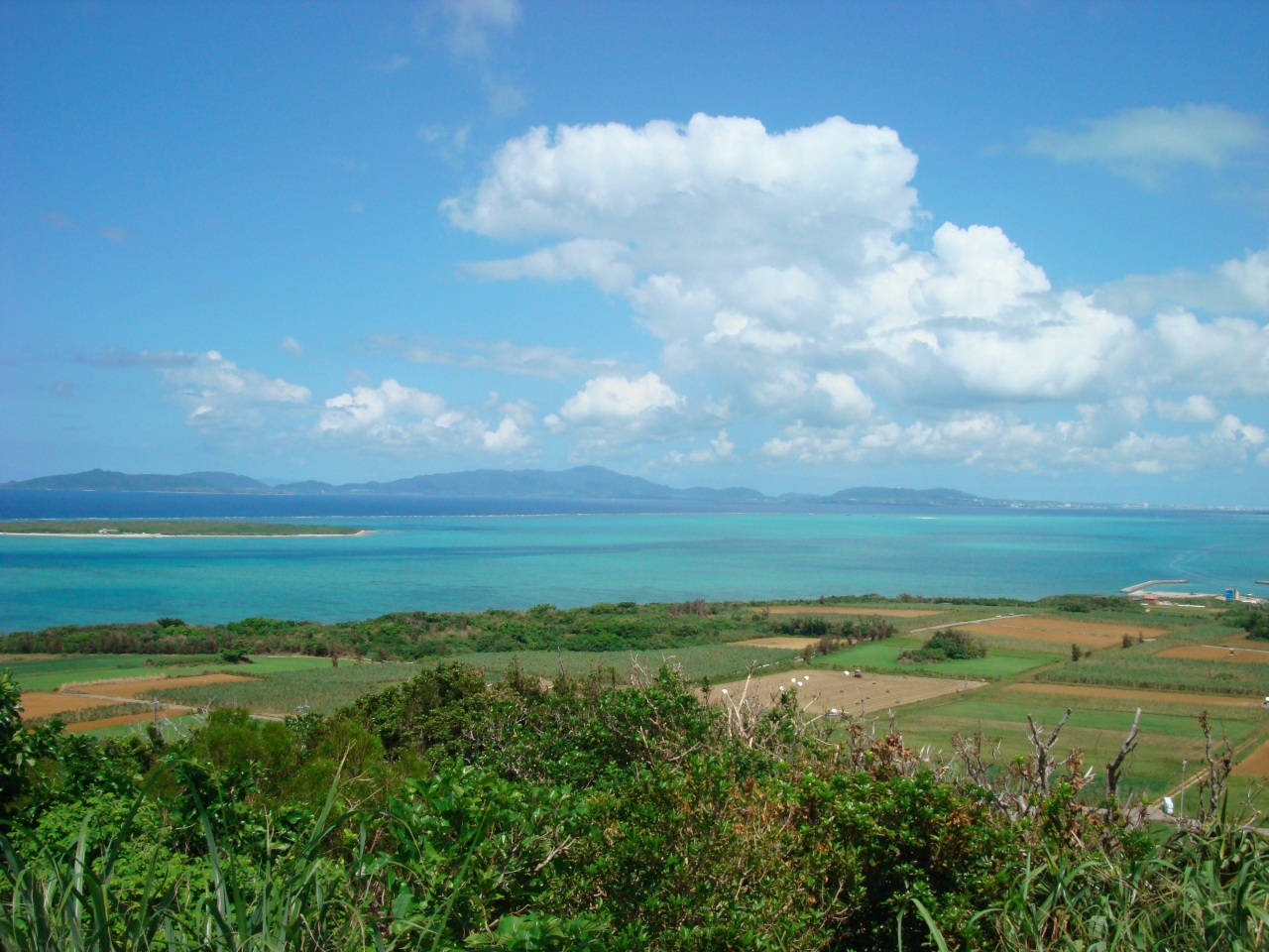 大岳は小浜島のちょうど真ん中にそびえる山、というか丘で、頂上まで登山道が整備されています。一本道(というよりも階段)なので誰でも簡単に上ることができます。海抜99メートルの高さだそうです。一気に頂上まで登りつめ展望台から周囲を眺めた時の感動はひとしおです。八重山諸島を一望できる360度の大パノラマが広がっています。天気の良い日だったので、海の色が目の覚めるような美しさで、言葉も忘れてただただ周囲を眺め続けてしまいました。一番大きくどんと鎮座している石垣島だけでなく、竹富島、黒島、西表島などなど色々な島を視界に収めることができるので、興味のある人は地図を持参することをお忘れなく。