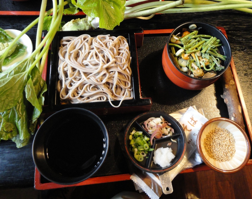 伊豆最古の温泉地といわれる修善寺に観光に出掛け、ランチを取ったのが禅風亭なゝ番 (ぜんぷうていななばん)でした。下調べをしたわけではなく、たまたま見かけて入っただけなのですが、民芸風の造りの店内を見回すと、有名人の色紙が沢山、掲示されているのを見つけました。芸能人も多数、訪れる有名店みたいでした。注文は店の名前から連想して「禅寺そば」でした。ふつーのそばに加え、山菜、とろろそばもついたそば尽くし。葉っぱのついた生ワサビを自分ですり下ろして食べるという趣向でした。そばにワサビってこだわりがないので、面倒なだけでしたけど、わたしの個人的な趣味の問題ですわね。葉っぱのワサビはお土産用と言われたけど、車で来てない限り、ちょっと邪魔かも。