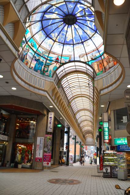 天文館といえば、九州で福岡の天神と争える商店街だと思う(私は、東京人)。その理由は、一度は入って食べてみたいと思えるグルメの店が多いこと。次は、立派なアーケードの存在。去年、訪ねたイタリア・ミラノのガレリアを思い出させるほどカラフルで、夢をもたせる作りがいい。