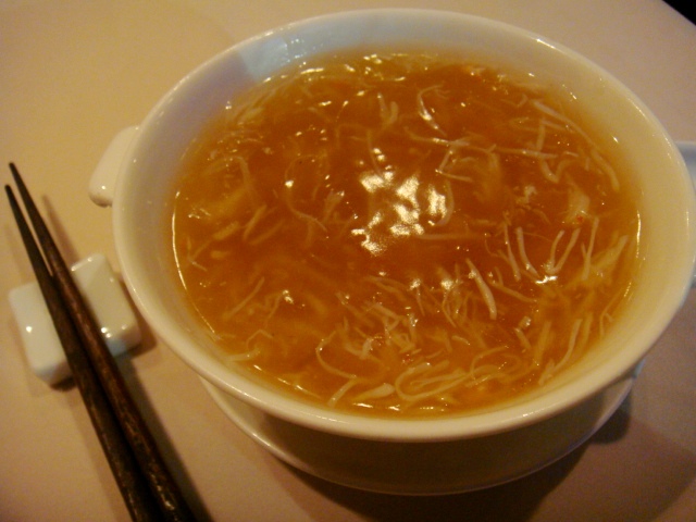 蟹肉魚翅~。フカヒレもけっこうたっぷりはいっています。