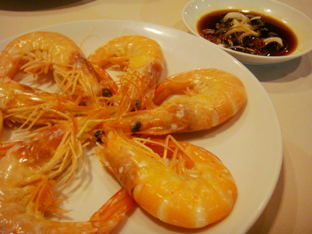 サイマキ海老を使った白灼蝦。ピリリとしたタレをちょっとつけて食べる。
