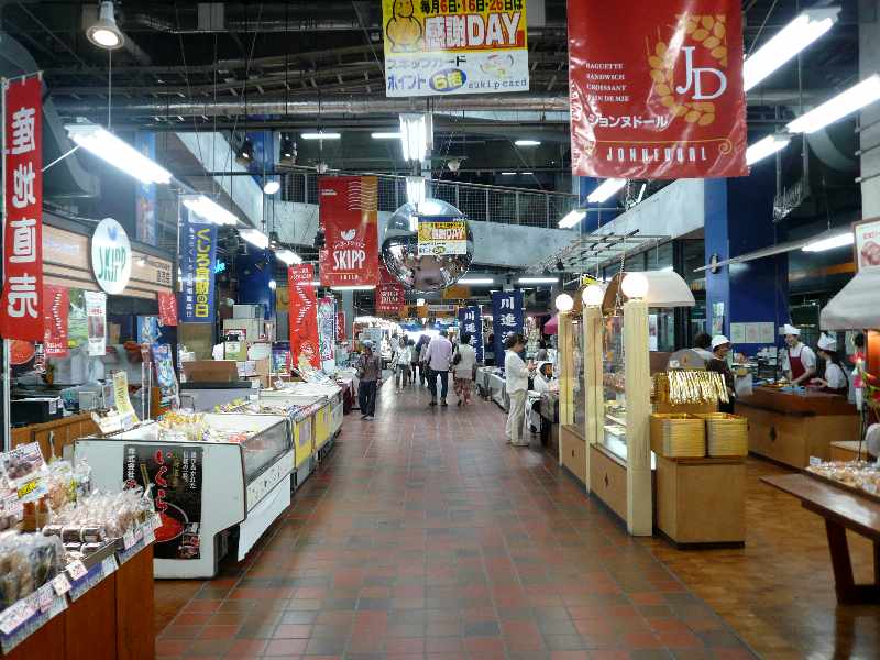 公式サイト(http://moo946.com/index.html)のフロアマップを見れば判りますが、まず5階、4階は公共機関、3階はビアホールを除いて公共機関、2階は半分が公共機関で残り半分が飲食店、1階は店舗。という訳で、商業施設は建物全体の半分以下しかありません。そして1階の店舗の中で海産物店は7軒ほど。土産物店、スイーツ店、パン屋等々、「フィッシャーマンズ…」のイメージにまったく合わない業種の方が多数派です。