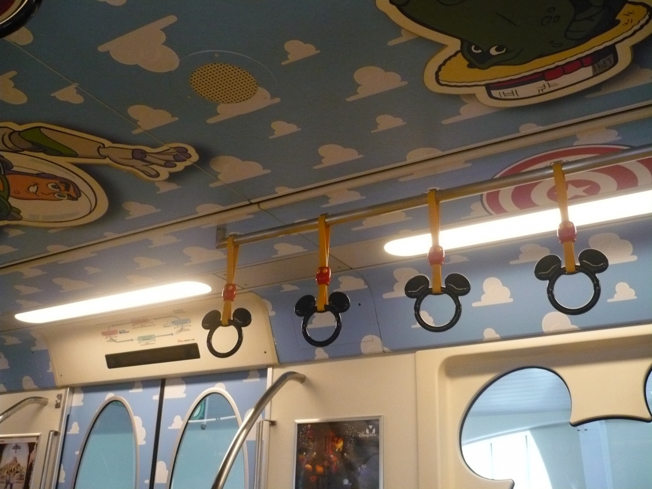 何種類かあり、内装も少し違うので楽しめます。吊り手がミッキーの形をしてるのもありました。きれいで便利でしたよモノレール。