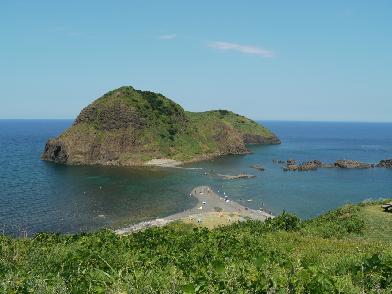 佐渡の北端の景勝地であり、海水浴場にもなっています。