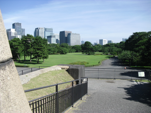 皇居東御苑の北の方にあります。江戸城の天守閣跡です。巨石を組み合わせた迫力ある天守台で、石舞台のようだと思いました。上へと登れるようになっていて、多くの観光客が登っていました。途中、表示板があり、本丸について書かれていました。芝生の本丸跡を見下ろしながら、本丸の様子を想像しました。