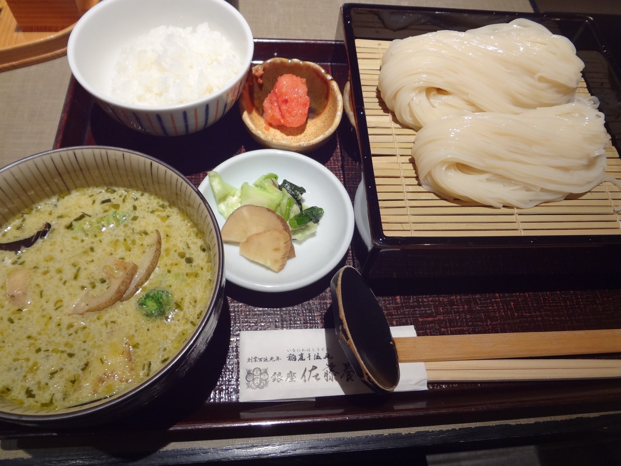 正統派稲庭うどん店の “グリーンカレーつけ麺”