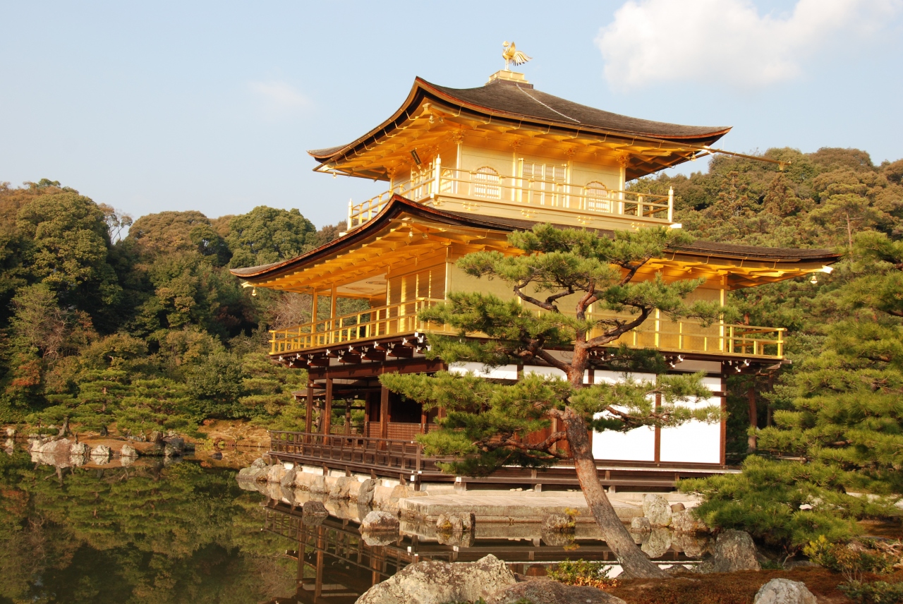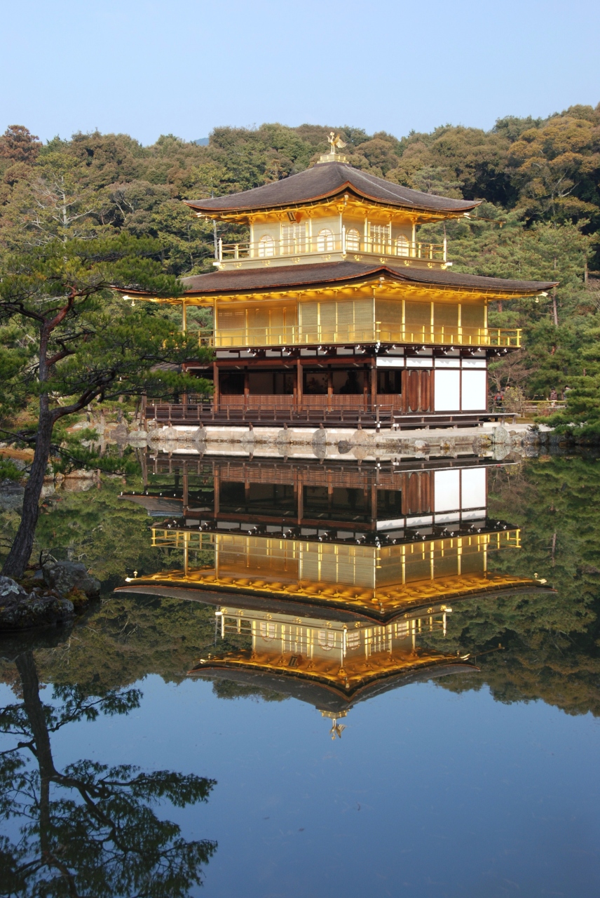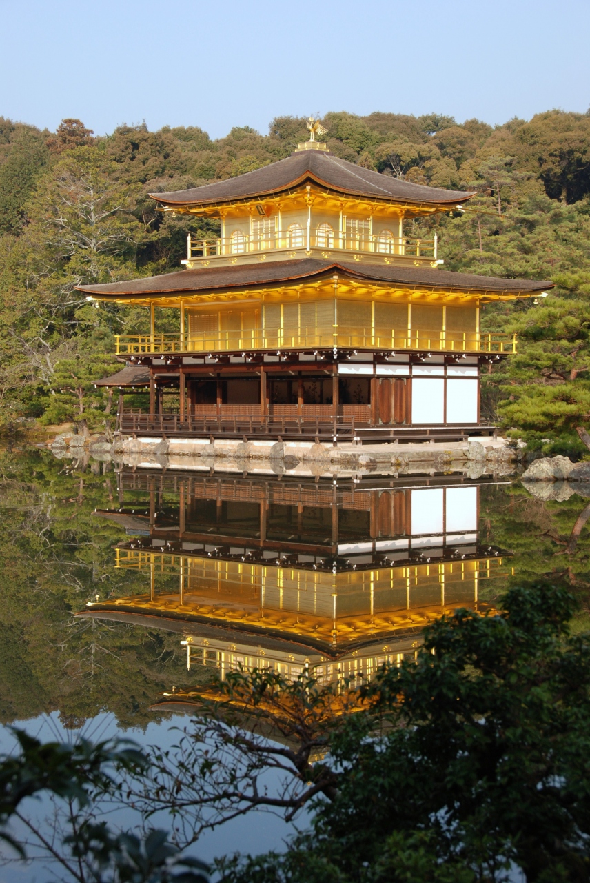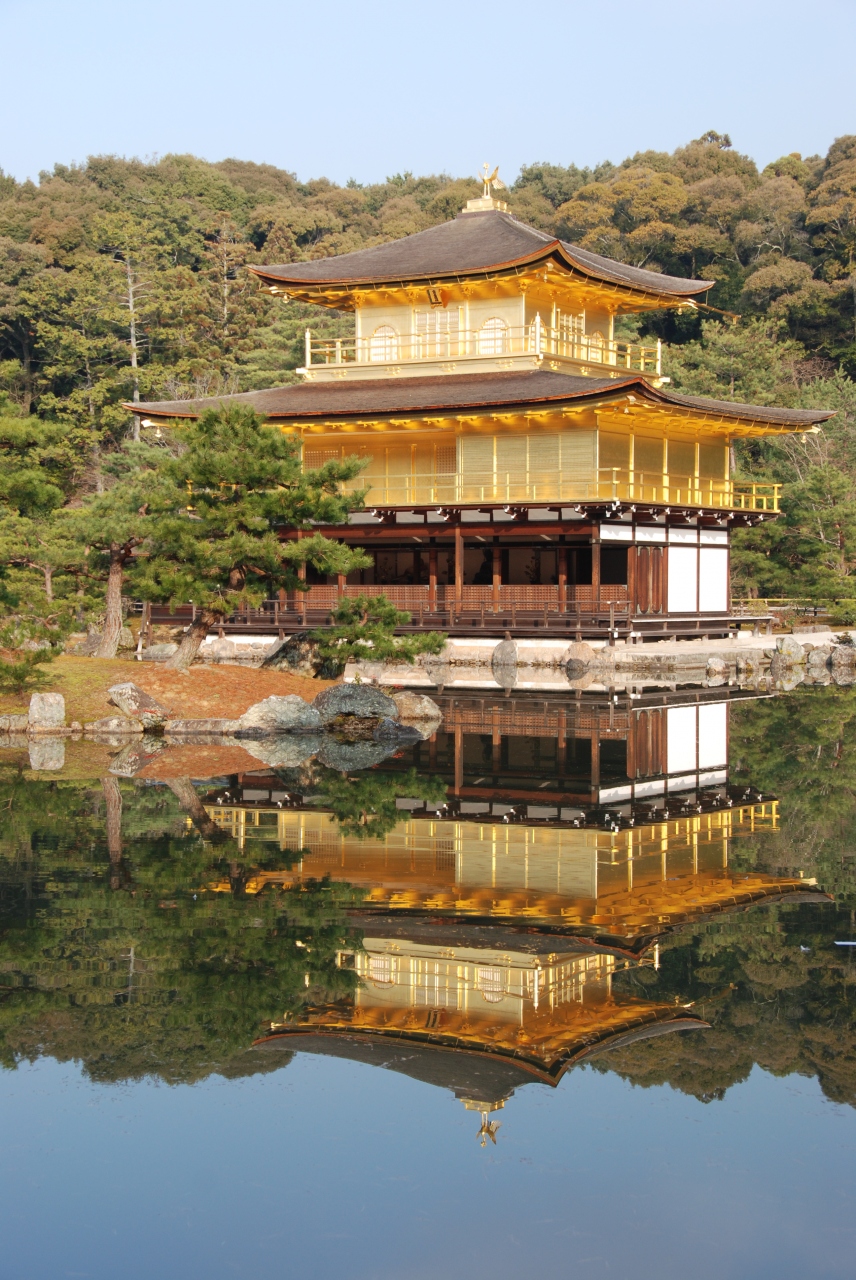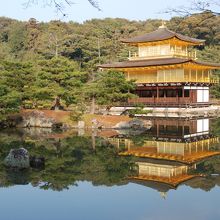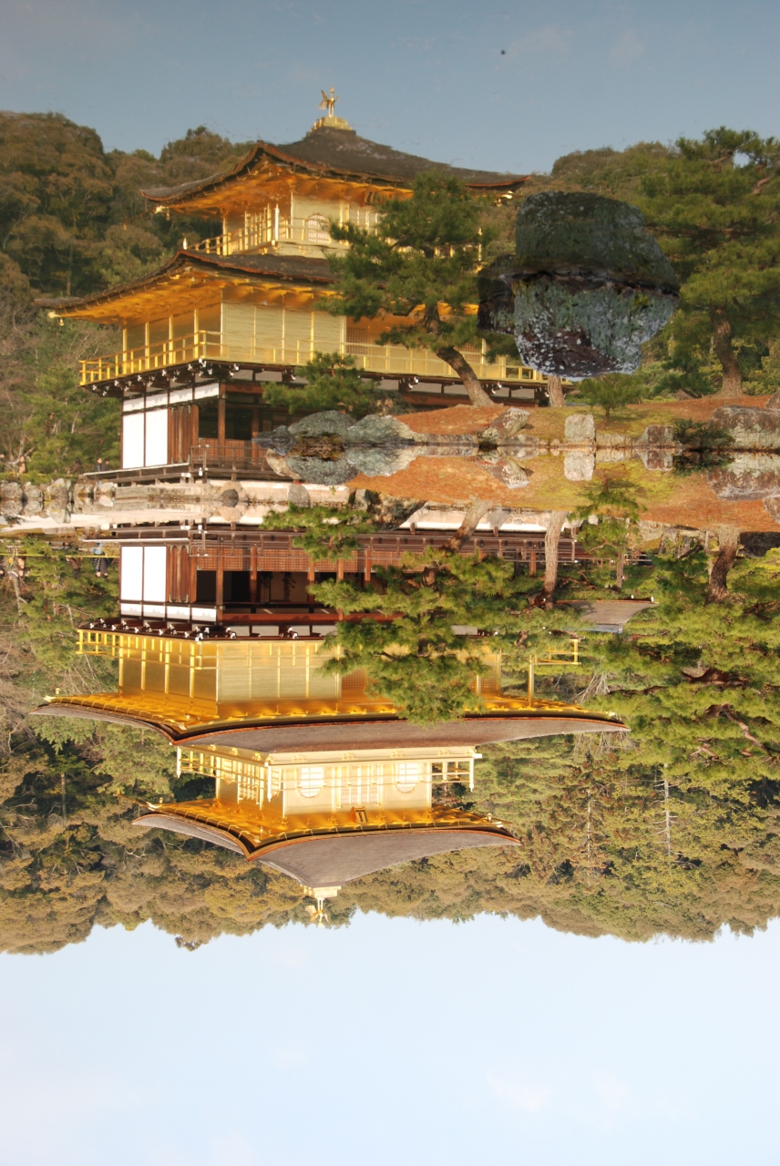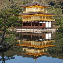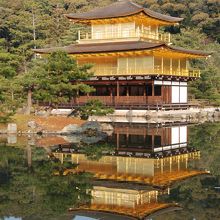 金閣寺が池に移って、一瞬どちらが上かわからないような写真もありました。