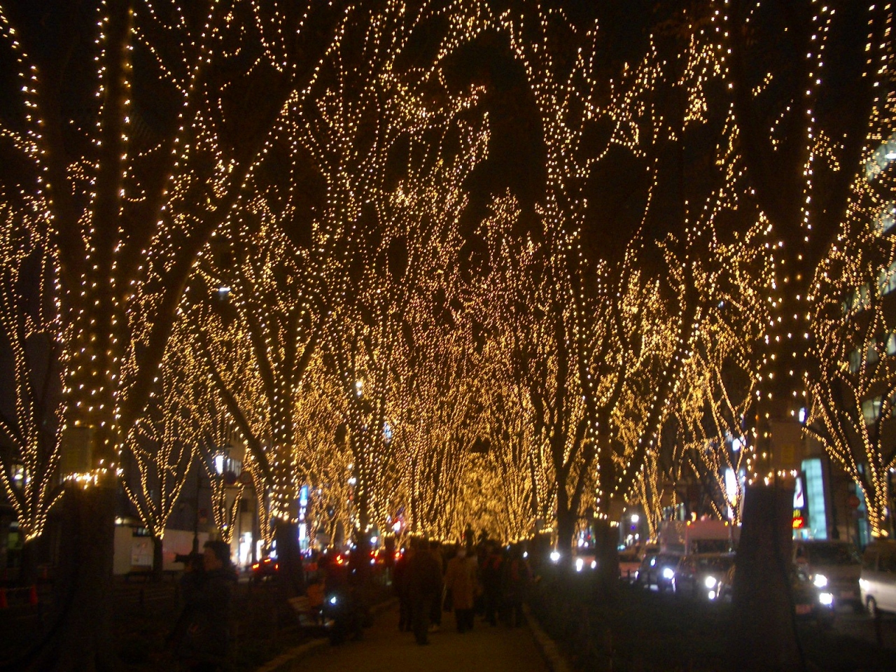 光のページェントは大変混みあっているので、少し先へ進んで、晩翠通りを越えた辺りからだと、比較的ゆっくりと眺めることが出来ますよ。