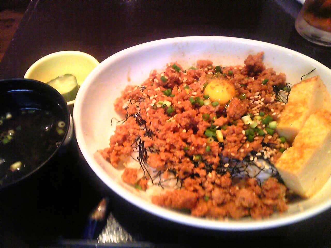 雑居飲食ビルの2階で店主一人で営むこちらのお店、ランチのそぼろ丼は、飲み物も付いて700円と破格の安さ。