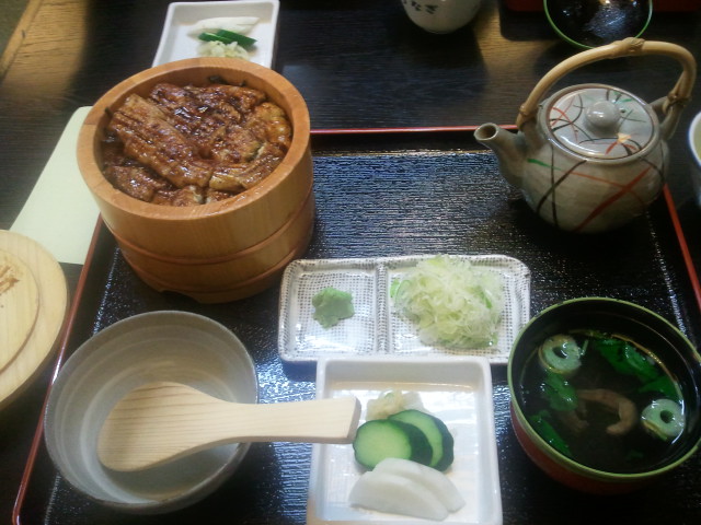 ひつまぶしを注文し、有名な三段階の食べ方をしましたが、普通に食べるのが一番おいしいという結果に。笑
