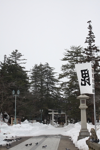 上杉家をまつる神社で、もともとお城のあった場所のようです。すぐ近くには上杉博物館があり、上杉家ゆかりの品々を見ることができるほか、上杉伯爵邸では、庭園と郷土料理を楽しむことができます。歴女さんがよく訪れるようです。僕が訪れた時も、雪にもかかわらず何人かいらっしゃいました。