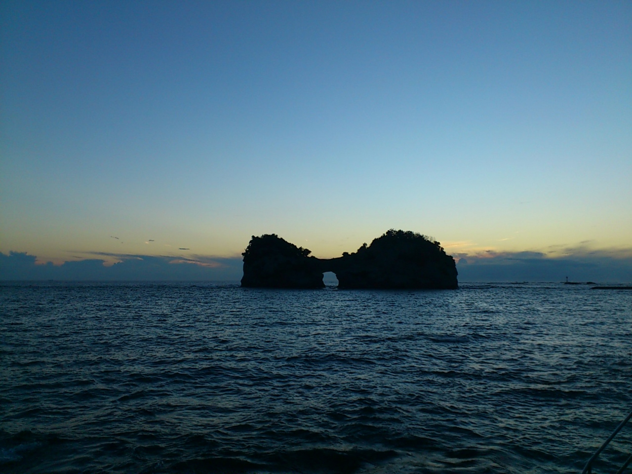 それでも夕焼けの中で見る円月島と海、とてもきれいでした。