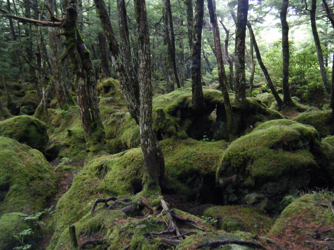 白駒池の周りは苔が何種類も生えていて、「もののけの森」風。