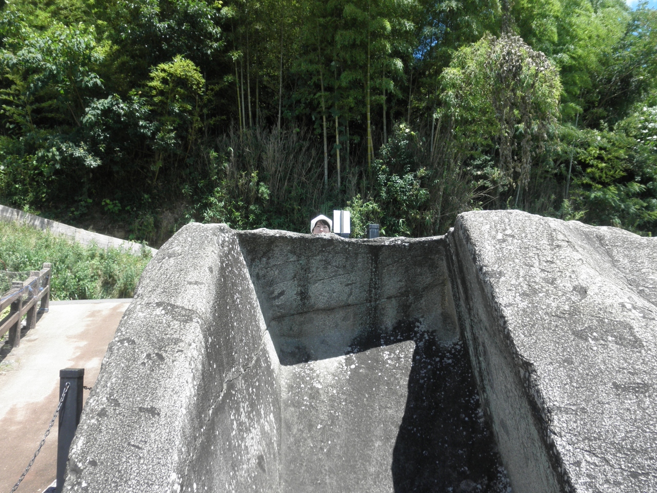 飛鳥駅で自転車をレンタルし、飛鳥観光をしました。ここは自転車で10分もせずに着いた、最初の観光スポットです。雪隠というのは、トイレのことで、確かに、男性用便器のような形をした、とても大きな石です。なんだかおもしろいし、まわりがとてものどかなので、癒やされました。
