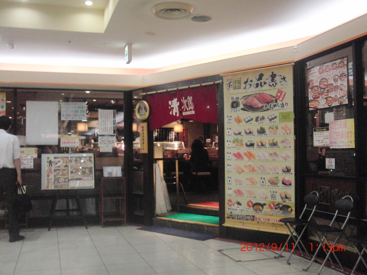 JR盛岡駅に接続している「フェザン」の地下の一番奥の右側に、この「清次郎」があります。 典型的な回転すしで、駅には一番近い、回転すしかも知れません。 値段に比例して味も、高級です。 昼食時には、並ばないと席に付けない時もあります。