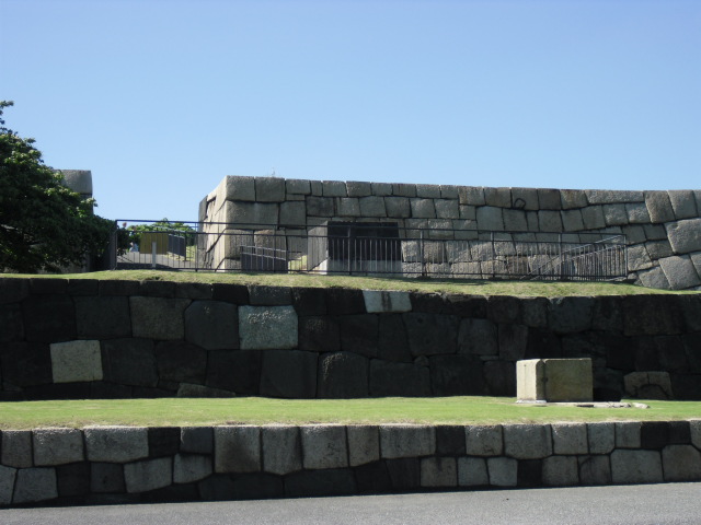 芝生の広がる本丸跡の北側に天守台があります。巨大な石を組み合わせて作ったもので、天守閣があったころはさぞや壮観だっただろうと思いました。上に登れるようになっていて、多くの人が登っていました。暑い日でちょっときつかったです。