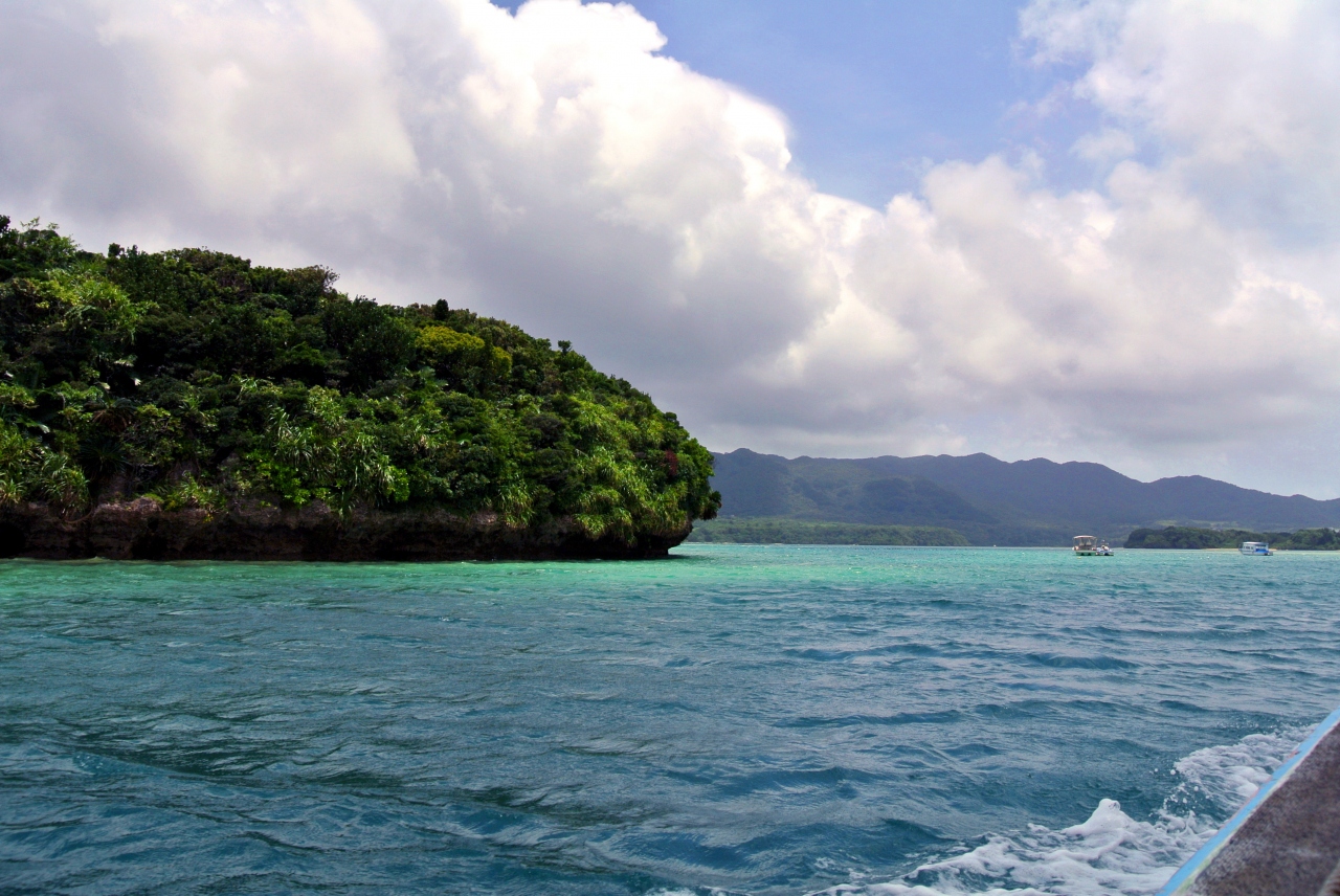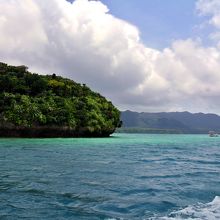 海の青はエメラルドグリーンに近く、珊瑚による微妙な模様が表情を与える。