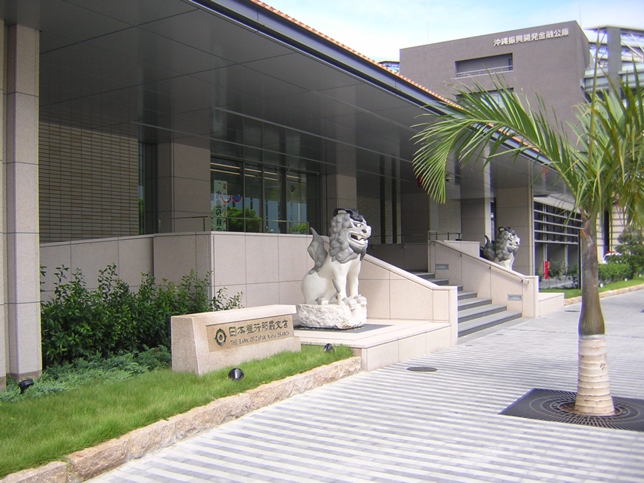 おもろまちを歩いてると、日本銀行那覇支店にであいました。入り口のシーサーと記念写真を撮るのも良いと思います。
