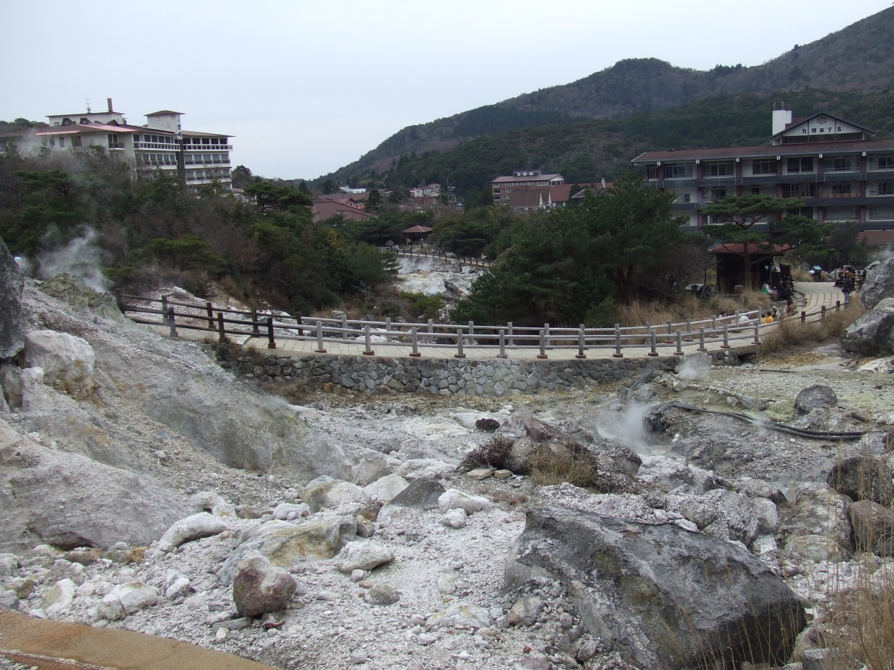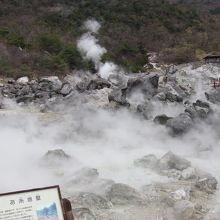 至る所から高温の温泉と噴気が激しく噴出し、強い硫黄臭が漂う中、湯けむりをもうもうと立たせる様子は、恐ろしげな地獄の景色そのものといえます。