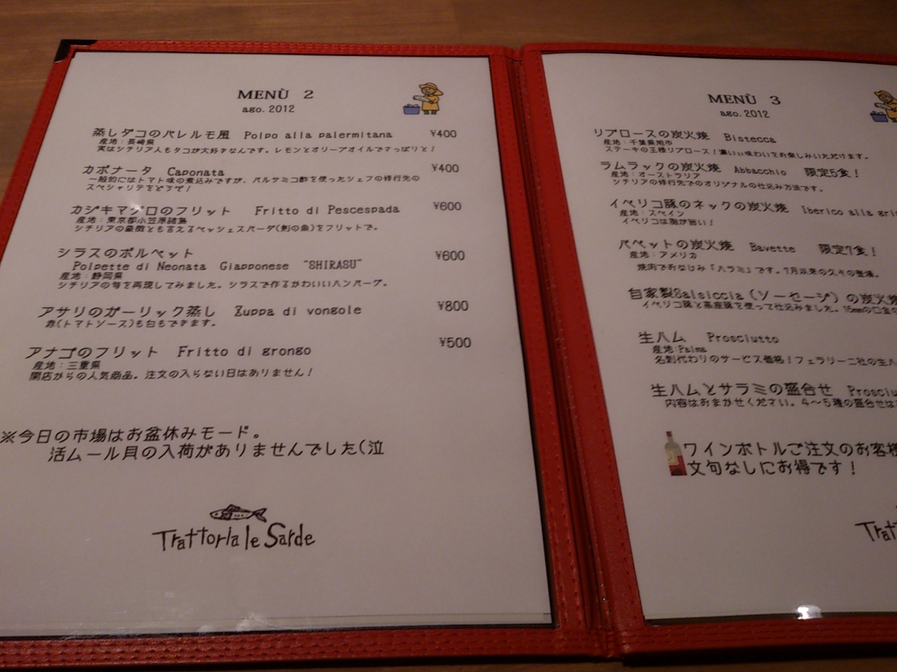 市場が休みのお盆に行ったので看板メニューのムール貝がありませんでしたが、料理は美味しく頂きました。