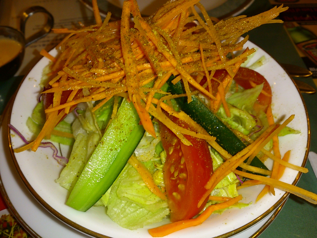 サラダ、サモサ、タンドリーチキン、カレーは2種類選べてチキンとキーマを選択しました。