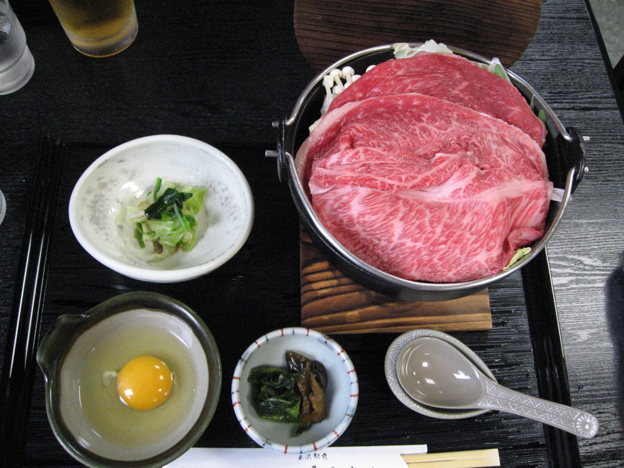 駅から近く、分かりわすい場所にあります。牛鍋定食2000円・焼肉定食1600円と生ビールで4000円ちょっとでした。牛鍋は、お肉を米沢牛oe山形牛を選べました。