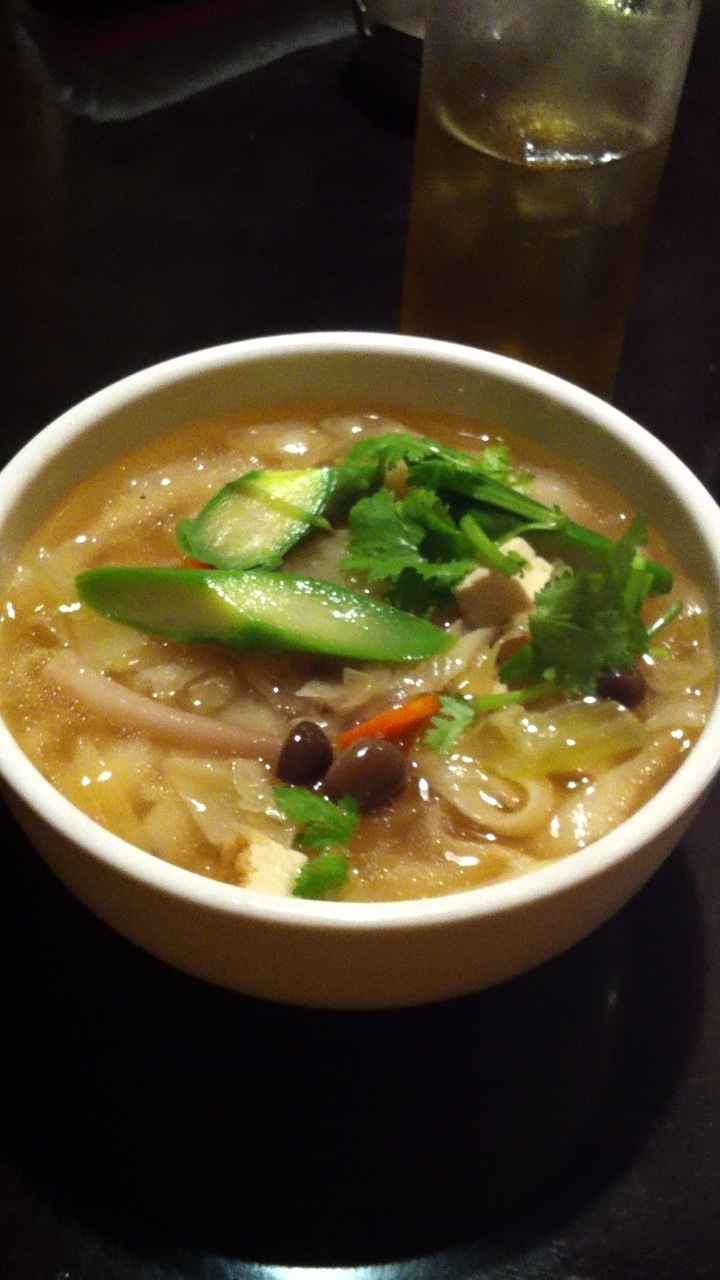 あっさりスープの野菜刀削麺 小盛り¥600とジャスミン茶¥300