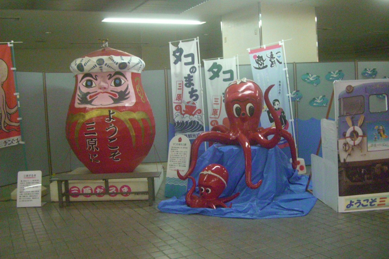 駅構内には小早川家の鎧とタコのだるまと人形がおいてあり、見所が判りやすいです。